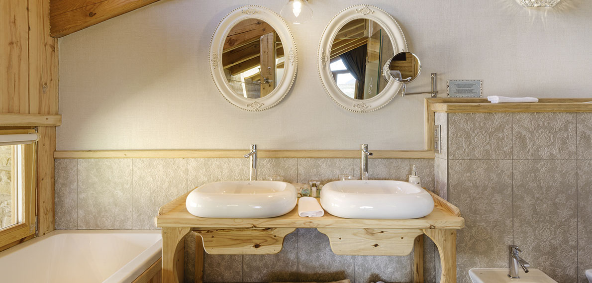 La Suite Premium del Hotel Viñas de Lárrede es una acogedora y amplia estancia revestida en madera, con todo el encanto de una casa de montaña tradicional, pero con servicios e instalaciones de lujo. Además, desde la terraza hay unas inmejorables vistas al valle y a las montañas de los Pirineos.